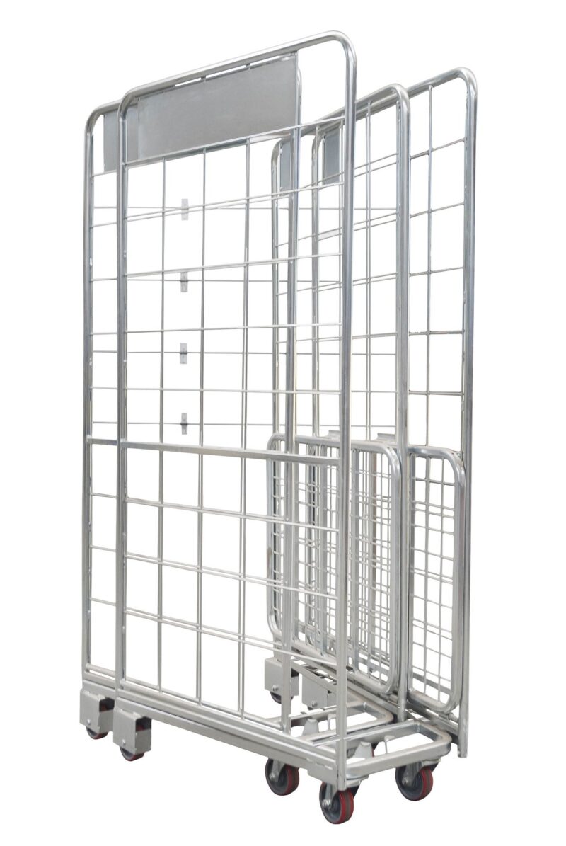 El carro de 2 laterales 800x700x1770 mm encajable de segunda mano está diseñado para facilitar el desplazamiento de mercancía dentro de almacenes, zonas de picking o áreas de clasificación. Su estructura abierta en un lateral permite realizar cargas y descargas rápidas, mientras que los laterales metálicos protegen la mercancía durante el recorrido. El formato encajable reduce espacio cuando no está en uso, aportando una ventaja directa en instalaciones con alta rotación de carros.