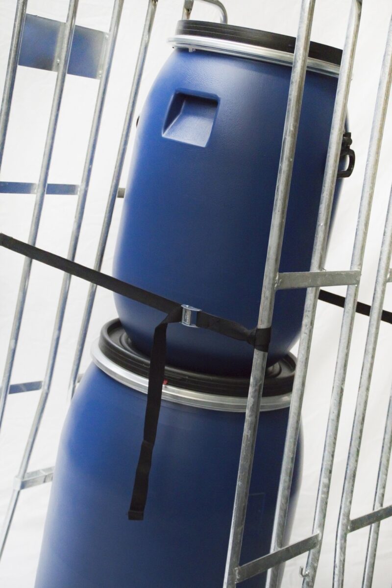 Este modelo es especialmente adecuado cuando el material se desplaza repetidamente entre diferentes áreas operativas. Las correas actúan como puntos de fijación que aseguran la estabilidad de la carga, incluso cuando el contenedor se mueve en pasillos estrechos o se realizan giros rápidos.